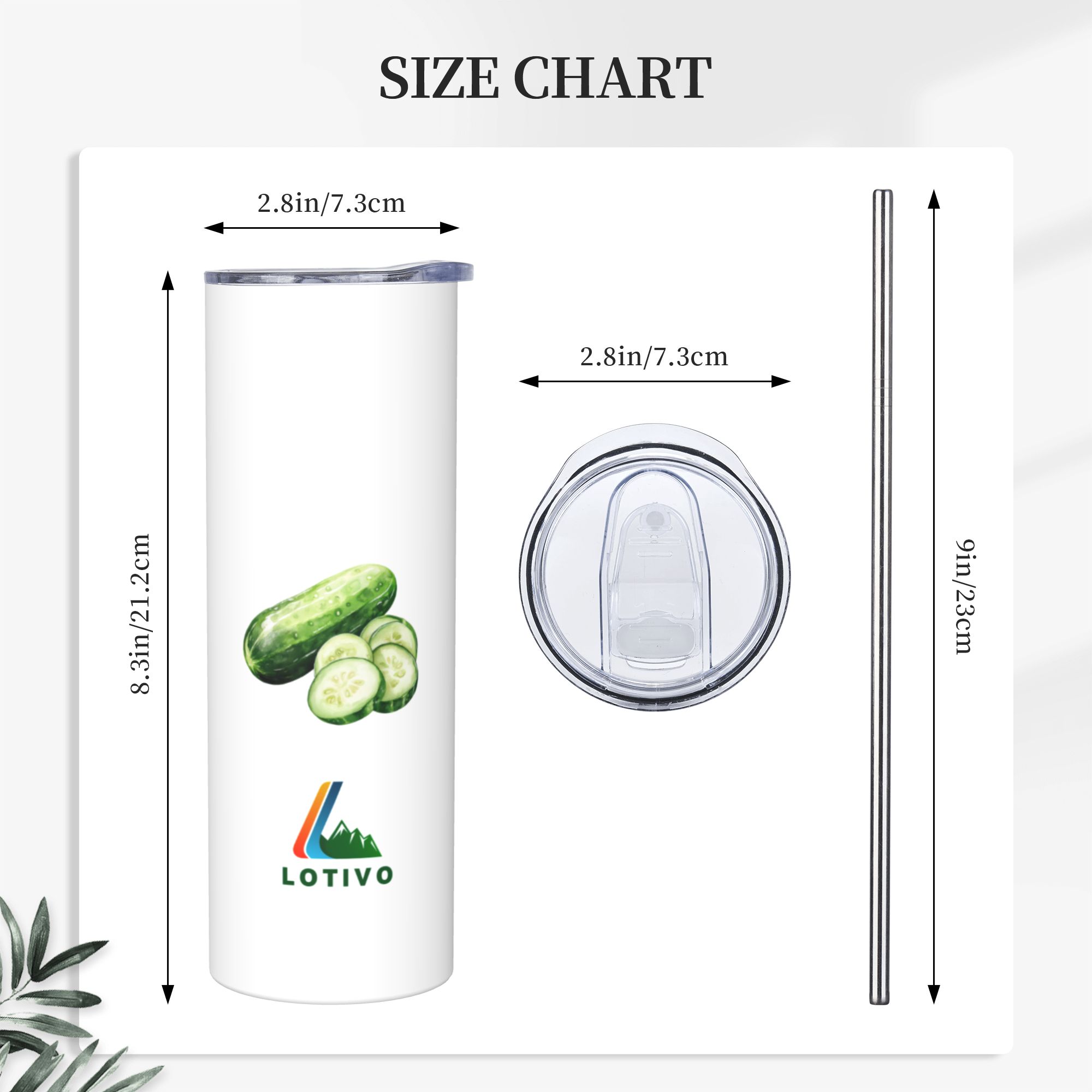 It boasts a clean white color and is decorated with pixel vegetable patterns, bringing a vibrant, nature – inspired touch. The package comes with a stainless steel straw (23cm in length) and a straw cleaning brush, facilitating easy care and use. The bottle has a height of 21.2cm and a width of 7.3cm, offering a comfortable grip and easy portability.